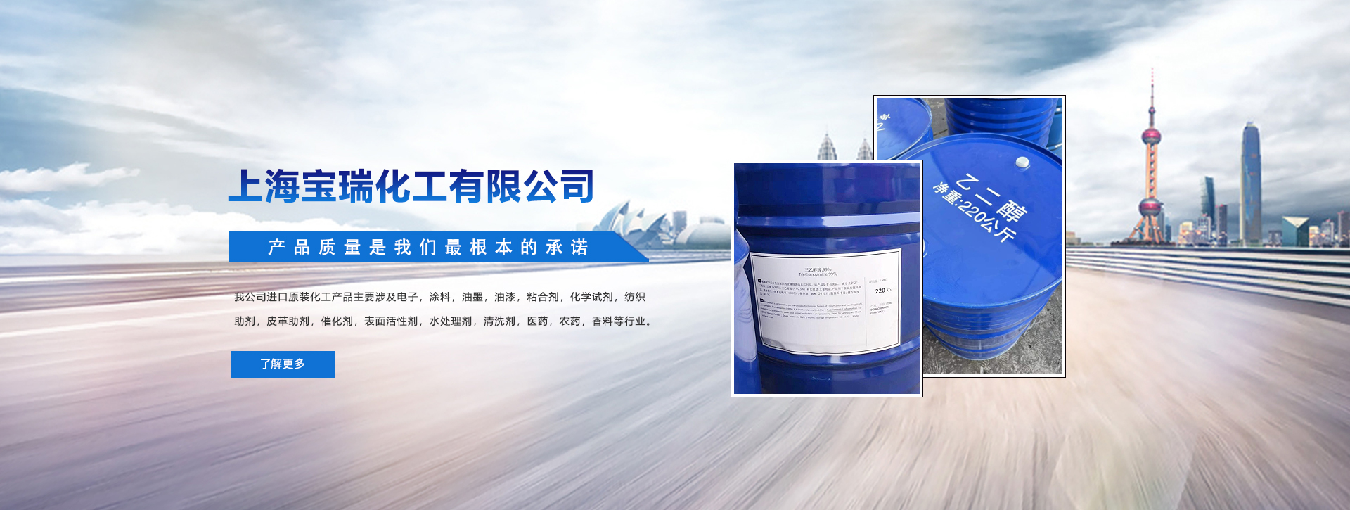 上海寶瑞化工有限公司組建于二00三年,是專門(mén)經(jīng)營(yíng)進(jìn)口原裝化工原料的專業(yè)化工公司. 公司自創(chuàng)建以來(lái). 一直致力于國(guó)內(nèi)外市場(chǎng)的開(kāi)發(fā),不斷拓寬經(jīng)營(yíng)渠道,擴(kuò)大經(jīng)營(yíng)規(guī)模,并且與美國(guó)DOW , SHELL , EXXONMOBIL,德國(guó)BAYER, BASF。法國(guó)ARKEMA ,韓國(guó)LG ,SKC,南非SASOL南京揚(yáng)子石化.上海金山石化,吉林吉化等多家企業(yè)建有長(zhǎng)期隱定的合作關(guān)系。我司的銷售網(wǎng)絡(luò)主要遍及華東地區(qū)。 與多家外資企業(yè),中外合資企業(yè),民營(yíng)企業(yè)建立了直供的業(yè)務(wù)關(guān)系.為行業(yè)的高端廠家提供優(yōu)質(zhì)原料和專業(yè)周到的服務(wù)。在和國(guó)內(nèi)外優(yōu)秀企業(yè)建立良好的合作關(guān)系的同時(shí),我司還將我們所掌握的國(guó)內(nèi)外多種行業(yè)的發(fā)展信息反饋給我們的相關(guān)行業(yè)的客戶,為我們的客戶提供了眾多其本行業(yè)所發(fā)展趨勢(shì)的信息,并積極引導(dǎo)客戶掌握最新產(chǎn)品行情和工業(yè)技術(shù)。贏得了國(guó)內(nèi)外合作伙伴的贊賞和信任。